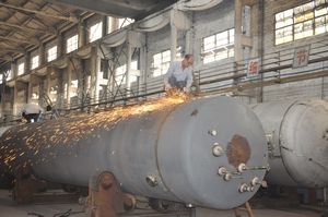 進(jìn)入容器公司,盡管夜色已經(jīng)降臨,但車間內(nèi)火熱的生產(chǎn)場(chǎng)景卻仍然讓人感動(dòng),員工的生產(chǎn)熱情仿佛被一下子調(diào)動(dòng)了起來,車間里沒有一個(gè)閑人似的,每個(gè)人都在忙碌,焊接聲、行車聲、打磨聲不絕于耳;在機(jī)加工車間的甁閥公司生產(chǎn)現(xiàn)場(chǎng),車床、鏜床、鉆床、磨床、銑床……每臺(tái)設(shè)備都在運(yùn)轉(zhuǎn),員工們都在認(rèn)真仔細(xì)地加工每一個(gè)零件,絲毫看不出這已經(jīng)在晚上了;來到冷箱車間現(xiàn)場(chǎng),銀色的筒體在燈光下分外耀眼,從高處看,各類塔體擺滿現(xiàn)場(chǎng),人在其間穿梭如同走在迷宮中,行車不停地在來回運(yùn)動(dòng),焊接弧光到處在閃爍,好一幅動(dòng)人的勞動(dòng)畫面。