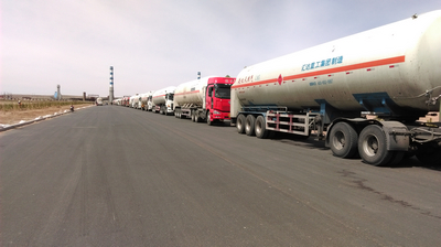 | 內(nèi)蒙古 興圣排隊(duì)加液車輛 | 興圣200萬方凈液化裝置區(qū)及3萬方儲(chǔ)槽 |