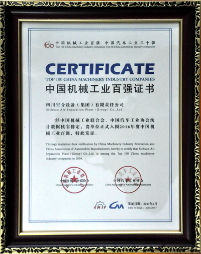 我公司入圍中國機械工業(yè)百強