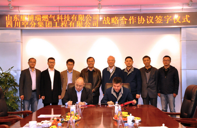 隨后,劉憲洲代表科瑞集團(tuán)山東康博燃?xì)饪萍加邢薰?,(集團(tuán))公司副總經(jīng)理、工程公司總經(jīng)理計(jì)曉亮代表四川空分集團(tuán)工程有限公司簽署了戰(zhàn)略合作協(xié)議。