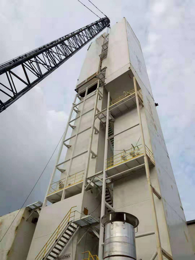 在現(xiàn)場(chǎng),指揮人員指揮著500噸和150噸吊車(chē)臂桿與吊鉤。29日上午9時(shí)準(zhǔn)備起吊主塔下段冷箱,指揮人員一聲令下,主塔下段冷箱緩慢抬起,隨后慢慢平移,歷經(jīng)近兩小時(shí),冷箱于上午11時(shí)吊裝就位?,F(xiàn)場(chǎng)立即組織人員于下午4時(shí)完成了加固冷箱與基礎(chǔ)底部,主吊車(chē)脫鉤。第二天完成了氬冷箱下段吊裝就位,主塔中段、上段、氬塔上段分別于1日、2日、3日依次吊裝就位。經(jīng)過(guò)近7天時(shí)間,3萬(wàn)空分冷箱全部順利吊裝就位,并加固,為之后的項(xiàng)目安裝服務(wù)階段打響了第一槍。