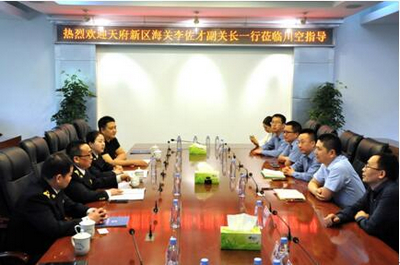 4月9日下午,成都天府新區(qū)海關(guān)李佐才副關(guān)長一行,在簡陽市商務(wù)和投資促進(jìn)局機(jī)關(guān)黨委書記黃偉等的陪同下,來到我公司參觀調(diào)研、指導(dǎo)工作。