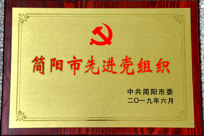 我公司黨建工作再次取得好成績,6月份,被中共簡陽市委授予“簡陽市先進黨組織”稱號。
