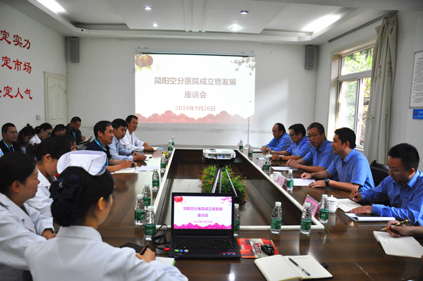 2019年9月26日,簡陽空分醫(yī)院成立暨發(fā)展座談會在我院會議室舉行,川空集團(tuán)公司副總經(jīng)理謝波主持座談會,川空集團(tuán)公司董事、副總經(jīng)理,醫(yī)院董事長單凱出席座談會并發(fā)表講話,川空集團(tuán)公司領(lǐng)導(dǎo),醫(yī)院領(lǐng)導(dǎo)班子,職能部門負(fù)責(zé)人,部分臨床科室代表參加了座談會。