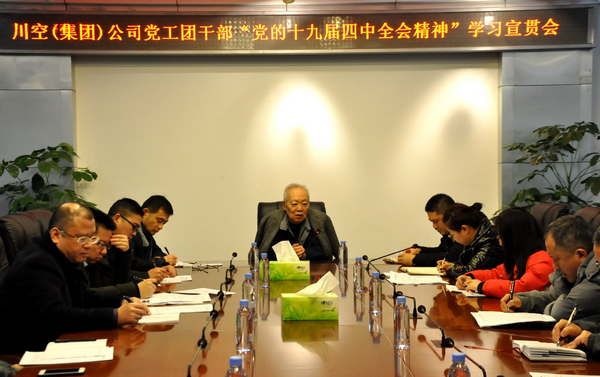 為深入學(xué)習(xí)貫徹黨的十九屆四中全會精神,結(jié)合上級黨組織、工會和團(tuán)委的要求,12月6日上午,(集團(tuán))公司在辦公樓二樓會議室召開了黨工團(tuán)干部“黨的十九屆四中全會精神”學(xué)習(xí)宣貫會。黨委書記單金銘作學(xué)習(xí)宣貫講話,公司各單位黨支部書記、分工會主席、團(tuán)支部書記參加學(xué)習(xí)宣貫。