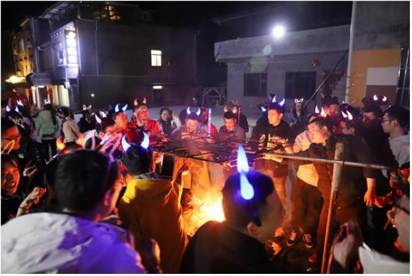 隨后大家一起享用了當(dāng)?shù)夭孛竦奶厣朗?藏式火鍋,并迎來了大家最期待的篝火晚會(huì)。大家一起手牽著手,圍著篝火,隨著音樂,在當(dāng)?shù)夭孛竦膸ьI(lǐng)下,一起跳舞,團(tuán)隊(duì)的氣氛達(dá)到了最高潮,火光照亮著面龐,大家都洋溢著開心幸福的笑容······