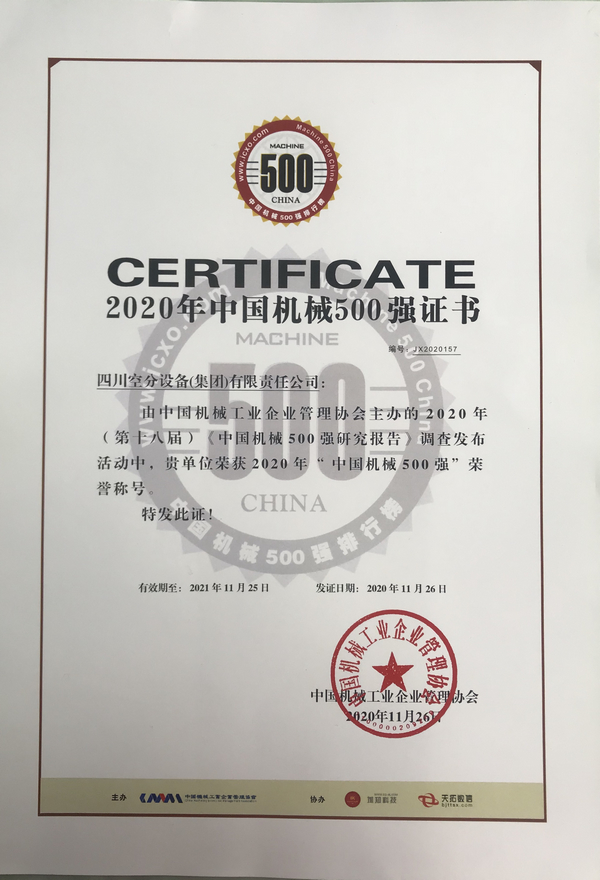 中國機械工業(yè)企業(yè)管理協(xié)會近日發(fā)布了“中國機械500強和中國機械500大榜單”,我公司均榜上有名。在“中國機械500強”榜單中,我公司位列第157位;在“中國機械500大”榜單中,我公司位列第278位。