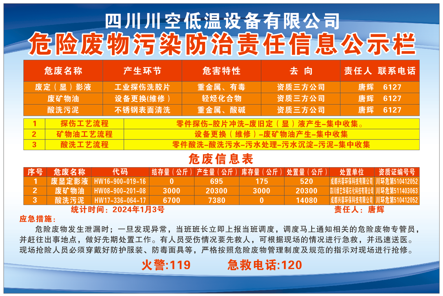 四川川空低溫設(shè)備有限公司——危險(xiǎn)廢物污染防治責(zé)任信息公示欄