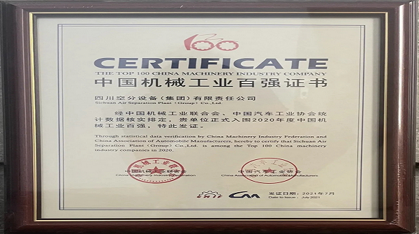 我公司入圍2020年度中國機(jī)械工業(yè)百強(qiáng)