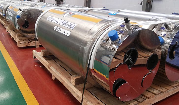 公司研發(fā)制造的150L—495L系列汽車用液化天然氣氣瓶。已經(jīng)裝備到多個(gè)城市公交車、重卡、工程用車上。公司生產(chǎn)的低溫焊接絕熱氣瓶取得了B3類證書,具有蒸發(fā)率低,結(jié)構(gòu)緊湊,操作簡便,安全可靠,氣液兩用的特點(diǎn),適用于液氧、液氮、液氬等低溫液體儲(chǔ)存。